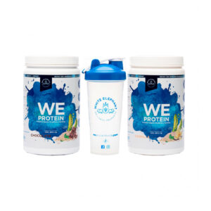 Llévate nuestras WEprotein chocolate y vainilla de 1kg con el 15% de descuento y disfrutes de una variedad de deliciosos smoothies y un shaker para que puedas llevarlo a cualquier parte. *El color del Shaker puede variar