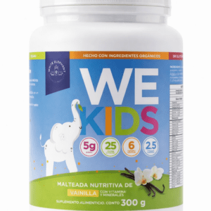WEkids Chocolate es una malteada nutritiva diseñada especialmente para niños, con 5gr de proteína vegetal, omega 3, superfoods, vitaminas y minerales esenciales que apoyan su crecimiento y desarrollo, en un sabor chocolate que les encanta.